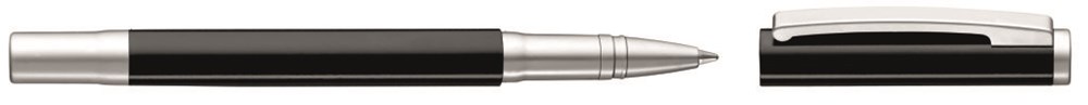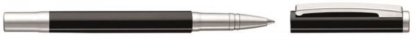 Metall-Rollerball mit gefedertem Clip. Oberfläche in silber matt und glänzenden Beschlagteilen, schwarz matt oder weiß glänzend mit matten Beschlägen.