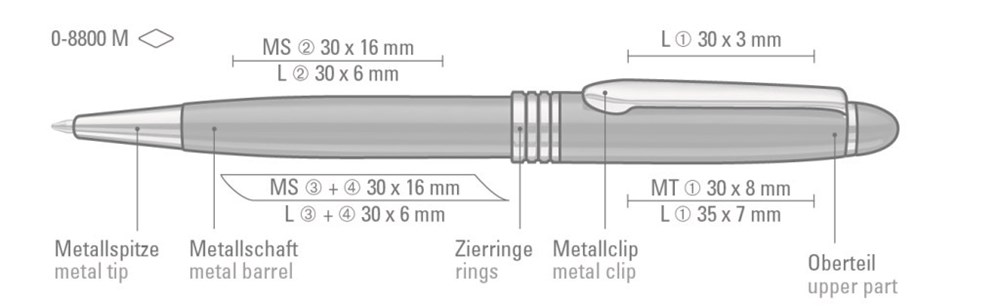 Metall-Drehkugelschreiber mit schwarz glänzend lackiertem Gehäuse. Clip, Zierringe und Spitze aus vergoldetem Metall. Minentype: uma Economy Class Refill Minenfarbe: schwarz
