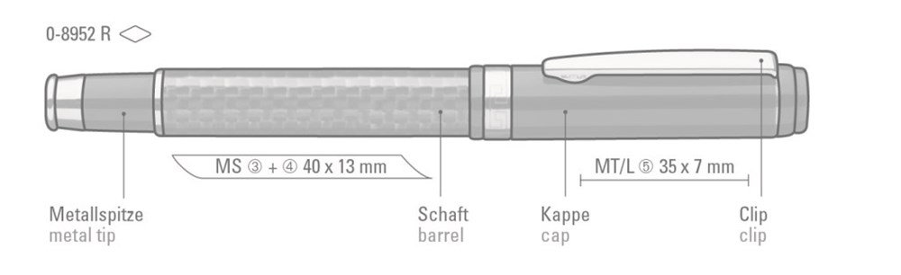 Carbonfaser-Rollerball mit Metallbeschlägen glanzverchromt. Minentype: uma High Class Rollerball... mehr