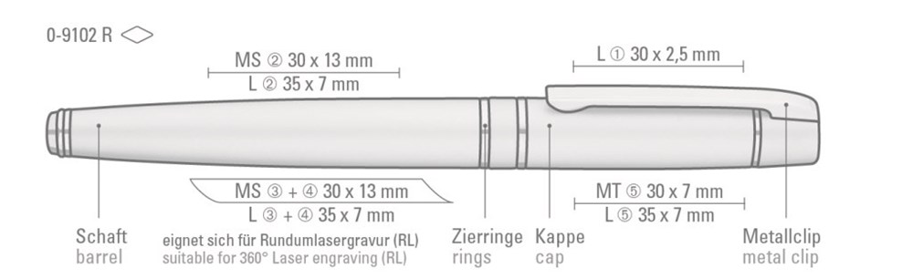 Veredelung: Lasergravur in Clipverlängerung (35x7 mm) 1-Farbig