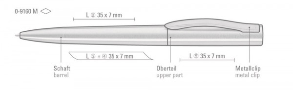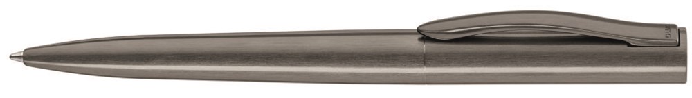 Metall-Drehkugelschreiber mit Softdrehmechanik und gefedertem Clip. Oberfläche in Edelstahl matt gebürstet oder in Gun-Optik. Minentype: uma Extra Class Refill Minenfarbe: blau