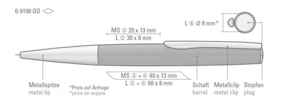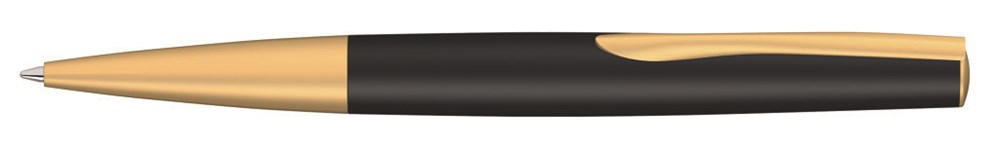 Metall-Drehkugelschreiber mit gedeckt mattem Gehäuse in schwarz, gefederter Metallclip und schwere Metallspitze in matt vergoldet.