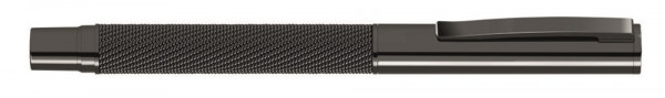 Metall-Rollerball glänzend lackiert, mit echtem Meshband um den Schaft und gefedertem Metallclip.