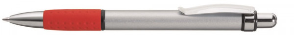 Druckkugelschreiber mit Aluminiumschaft, Metallclip und farbiger Gummigriffzone.