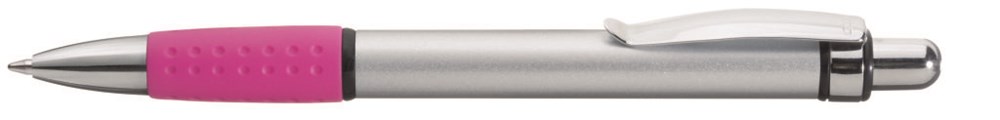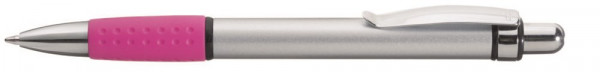 Druckkugelschreiber mit Aluminiumschaft, Metallclip und farbiger Gummigriffzone.