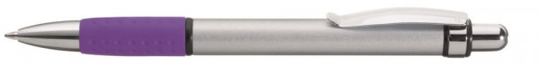 Druckkugelschreiber mit Aluminiumschaft, Metallclip und farbiger Gummigriffzone.