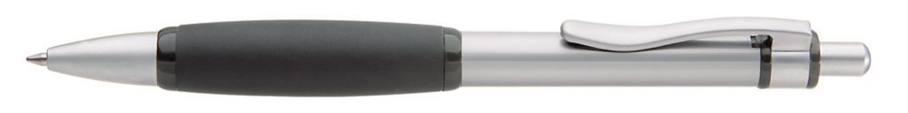 Metall-Druckkugelschreiber mit glänzend verchromtem, lackiertem Schaft, Drücker, Clip und Spitze. Weiche, große Gummigriffzone und transparente Zierringe unifarben.