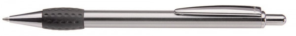 Metall-Druckkugelschreiber mit glanz verchromtem, lackiertem Schaft, Drücker, Clip und Spitze. Gummigriffzone farbig.