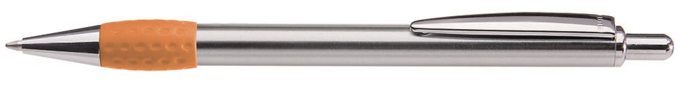 Metall-Druckkugelschreiber mit glanz verchromtem, lackiertem Schaft, Drücker, Clip und Spitze. Gummigriffzone farbig.