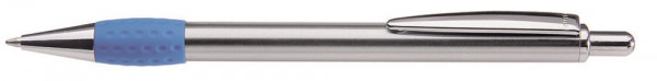 Metall-Druckkugelschreiber mit glanz verchromtem, lackiertem Schaft, Drücker, Clip und Spitze. Gummigriffzone farbig.
