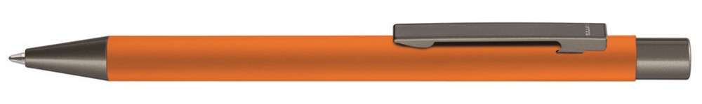 Metall-Druckkugelschreiber mit Softtouch-Schaft, Metallclip, Metallspitze und Drücker in Gun metallic.