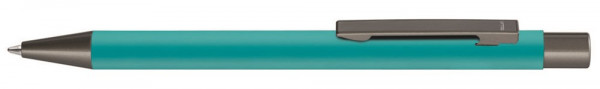 Metall-Druckkugelschreiber mit Softtouch-Schaft, Metallclip, Metallspitze und Drücker in Gun metallic.