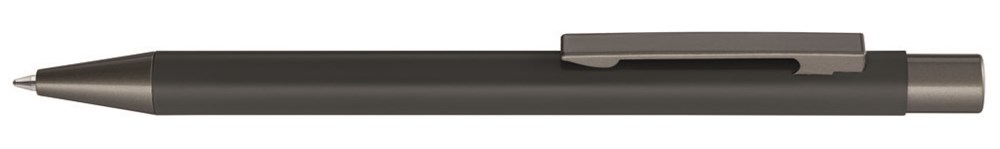 Metall Druckkugelschreiber mit mattem Gehäuse Metallclip, Metallspitze, Clip und Drücker in GUN metallic