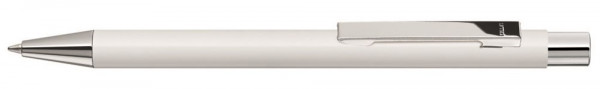 Metall-Druckkugelschreiber mit matter Oberfläche, Metallclip, Metallspitze und Drücker in silber glänzend.