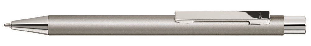 Metall-Druckkugelschreiber mit matter Oberfläche, Metallclip, Metallspitze und Drücker in silber glänzend.