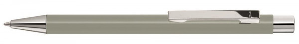 Metall-Druckkugelschreiber mit matter Oberfläche, Metallclip, Metallspitze und Drücker in silber glänzend.