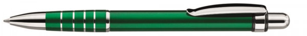 Metall-Druckkugelschreiber mit lackiertem Aluminium Schaft, Metallclip und Griffzone mit Ringdesign glanzverchromt.