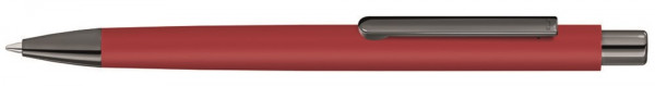 Metall-Druckkugelschreiber mit ellipsenförmigem Softtouch-Schaft, Metallclip, Metallspitze und ellipsenförmiger Drücker in GUN metallic. Hier geht´s zum Video: https://uma-pen.com/formsprache