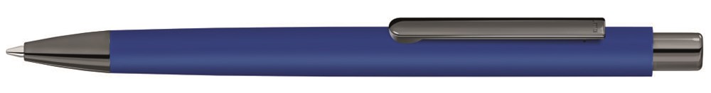 Metall-Druckkugelschreiber mit ellipsenförmigem Softtouch-Schaft, Metallclip, Metallspitze und ellipsenförmiger Drücker in GUN metallic. Hier geht´s zum Video: https://uma-pen.com/formsprache