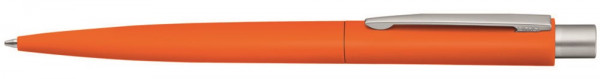 Metall-Druckkugelschreiber mit matt gummiertem farbigem Gehäuse. Metallclip und Drücker matt verchromt.