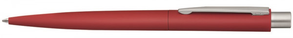 Metall-Druckkugelschreiber mit matt gummiertem farbigem Gehäuse. Metallclip und Drücker matt verchromt.