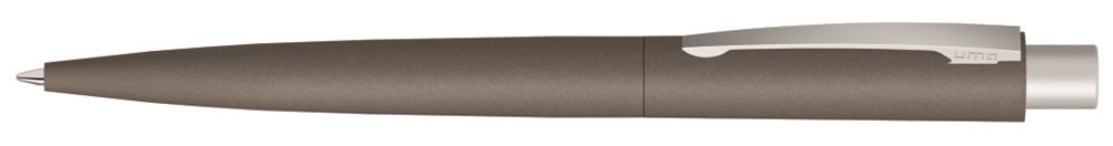 Metall-Druckkugelschreiber mit nachgestellter Beton- bzw. Steinoptik und Haptik. Metallclip und Drücker matt verchromt. Minentype: uma Tech Refill 1.0, schwarzes Rohr Minenfarbe: blau
