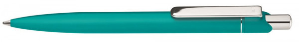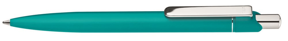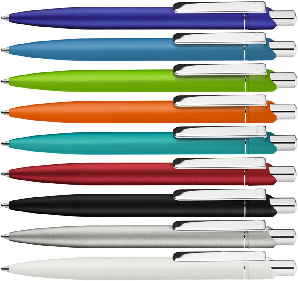 Metall-Druckkugelschreiber mit matt lackiertem Aluminium-Schaft. Metallclip und Drücker silber glanzverchromt. Minentype: uma Economy Class Refill Minenfarbe: blau