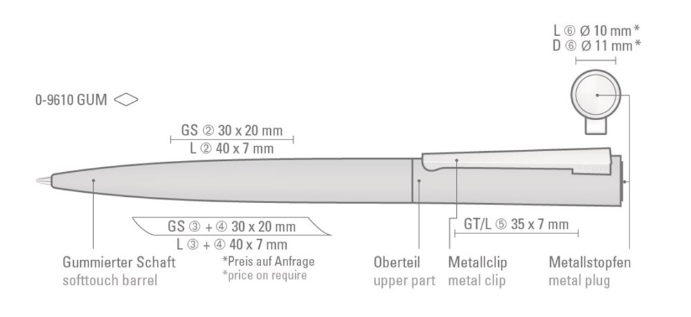 Metall-Drehkugelschreiber mit matt gummiertem farbigem Gehäuse, gefederter Metallclip und Stopfen matt verchromt. Hier geht´s zum Video: https://uma-pen.com/brushgumset Minentype: uma Flow Motion Refill M1.2 Minenfarbe: blau