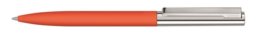 Metall-Drehkugelschreiber mit glanzverchromtem Metalloberteil und gefedertem Metallclip. Schaft matt gummiert in verschiedenen Farben.