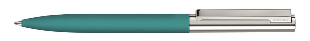 Metall-Drehkugelschreiber mit glanzverchromtem Metalloberteil und gefedertem Metallclip. Schaft matt gummiert in verschiedenen Farben.