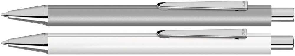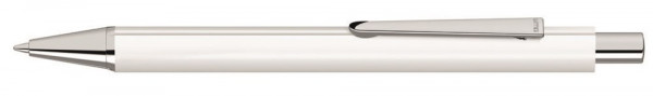 Metall-Druckkugelschreiber mit Dreikantgehäuse und matter Oberfläche, Metallclip, Metallspitze und Drücker in silber glänzend. Hier geht´s zum Video: https://uma-pen.com/formsprache Minentype: uma Tech Refill 1.0, schwarzes Rohr Minenfarbe: blau