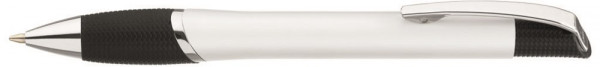 Metall-Druckkugelschreiber mit Gummigriffzone und glanzverchromten Beschlagteilen.