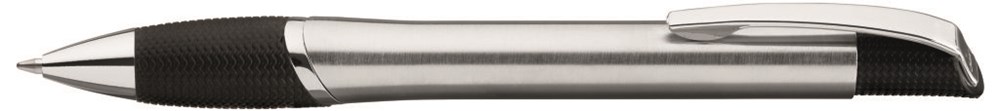Metall-Druckkugelschreiber mit Gummigriffzone und glanzverchromten Beschlagteilen.