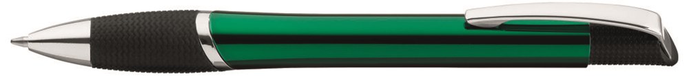 Metall-Druckkugelschreiber mit Gummigriffzone und glanzverchromten Beschlagteilen.
