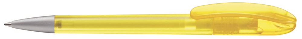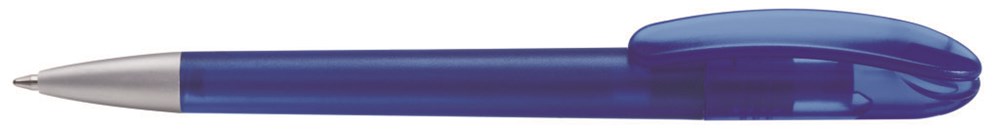 Drehkugelschreiber mit transparent gefrostetem Gehäuse und schwerer matt verchromter Metallspitze. BlackForestPen – Designed in Deutschland, gefertigt in der Schweiz, zusammengefügt und veredelt im Schwarzwald. Minentype: uma Tech Refill 1.0, weisses Rohr Minenfarbe: blau