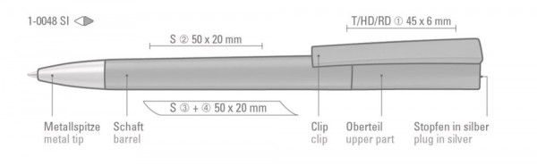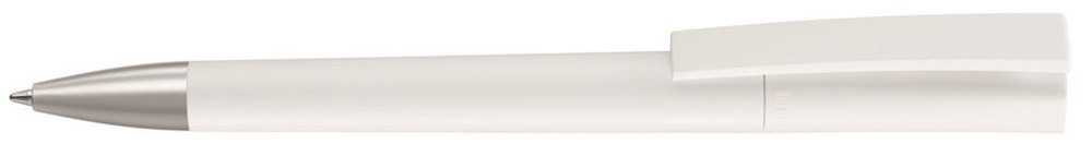 Drehkugelschreiber mit weiß oder schwarz matt gedecktem Gehäuse, silbernem Stopfen im Oberteil und schwerer Metallspitze mattverchromt. BlackForestPen – Designed in Deutschland, gefertigt in der Schweiz, zusammengefügt und veredelt im Schwarzwald. Minentype: uma Tech Refill 1.0, schwarzes Rohr Minenfarbe: blau