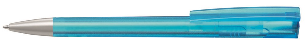 Drehkugelschreiber mit transparent gefrostetem Gehäuse, silbernem Stopfen im Oberteil und... mehr