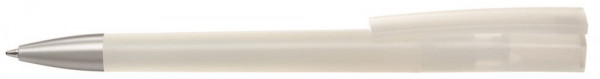 Drehkugelschreiber mit transparent gefrostetem Gehäuse, silbernem Stopfen im Oberteil und... mehr