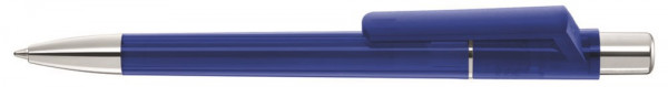 Druckkugelschreiber mit transparent glänzendem Gehäuse, Metallzierring und Drücker sowie schwerer... mehr