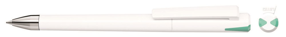 Drehkugelschreiber mit gedeckt glänzendem Gehäuse, Oberteil mit zwei farbigen Stopfen in gedeckt... mehr