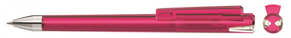 Drehkugelschreiber mit transparent glänzendem Gehäuse, Oberteil mit zwei farbigen Stopfen in... mehr