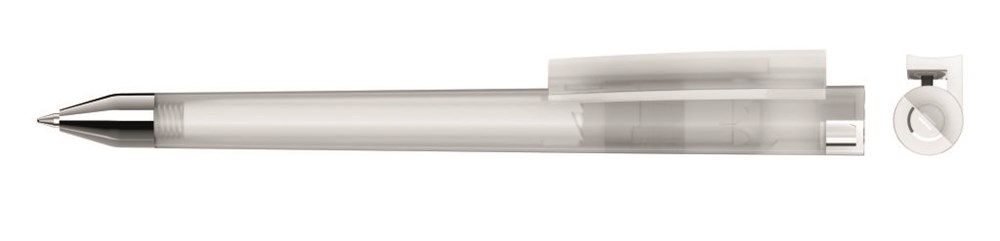 Drehkugelschreiber mit gefrostetem Schaft, Clip und Stopfen im Oberteil gedeckt glänzend bzw.... mehr