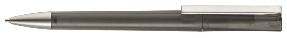Drehkugelschreiber mit transparent gefrostetem Gehäuse, schwerer Metallspitze und Metallclip matt verchromt. Designed in Deutschland, gefertigt in der Schweiz, zusammengefügt und veredelt im Schwarzwald.