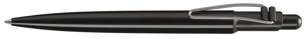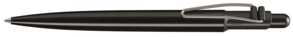 Druckkugelschreiber mit vernickeltem Metallbiegeclip und gedeckt glänzendem Gehäuse. Designed in Deutschland, gefertigt in der Schweiz, zusammengefügt und veredelt im Schwarzwald.