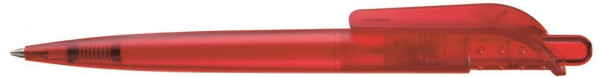 Druckkugelschreiber mit transparent gefrostetem Schaft und großem Clip an genoppter Clipaufhängung. Designed in Deutschland, gefertigt in der Schweiz, zusammengefügt und veredelt im Schwarzwald.