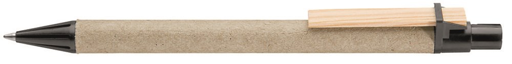 Druckkugelschreiber aus recycelter, naturfarbener Pappe. Spitze und Drücker unifarben aus recyceltem oder biologisch (Bio-Mix) abbaubarem Kunststoff sowie Holzclip. Minentype: uma X-20 Refill Minenfarbe: blau
