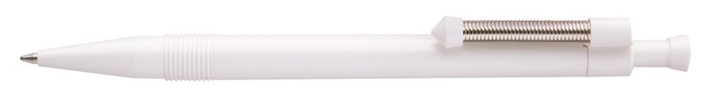 Druckkugelschreiber mit flexiblem und vernickeltem Metallfederclip.