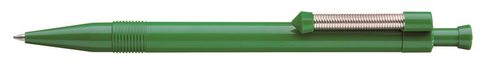 Druckkugelschreiber mit flexiblem und vernickeltem Metallfederclip.