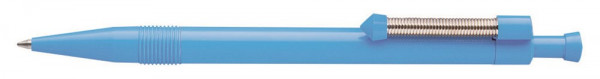 Druckkugelschreiber mit flexiblem und vernickeltem Metallfederclip.