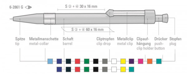 Druckkugelschreiber wie 6-2860 G, jedoch mit Metallmanschette als Griffzone.